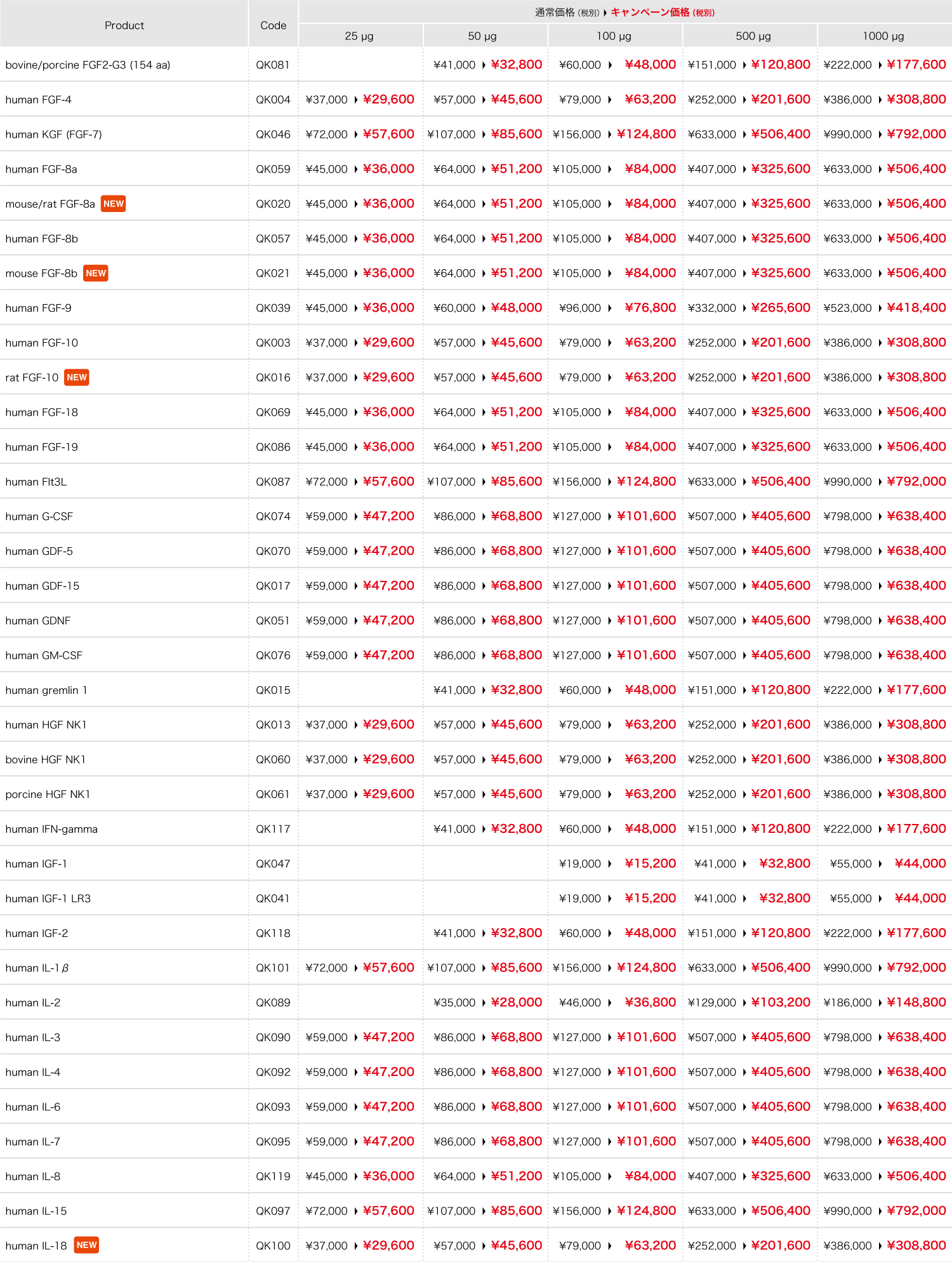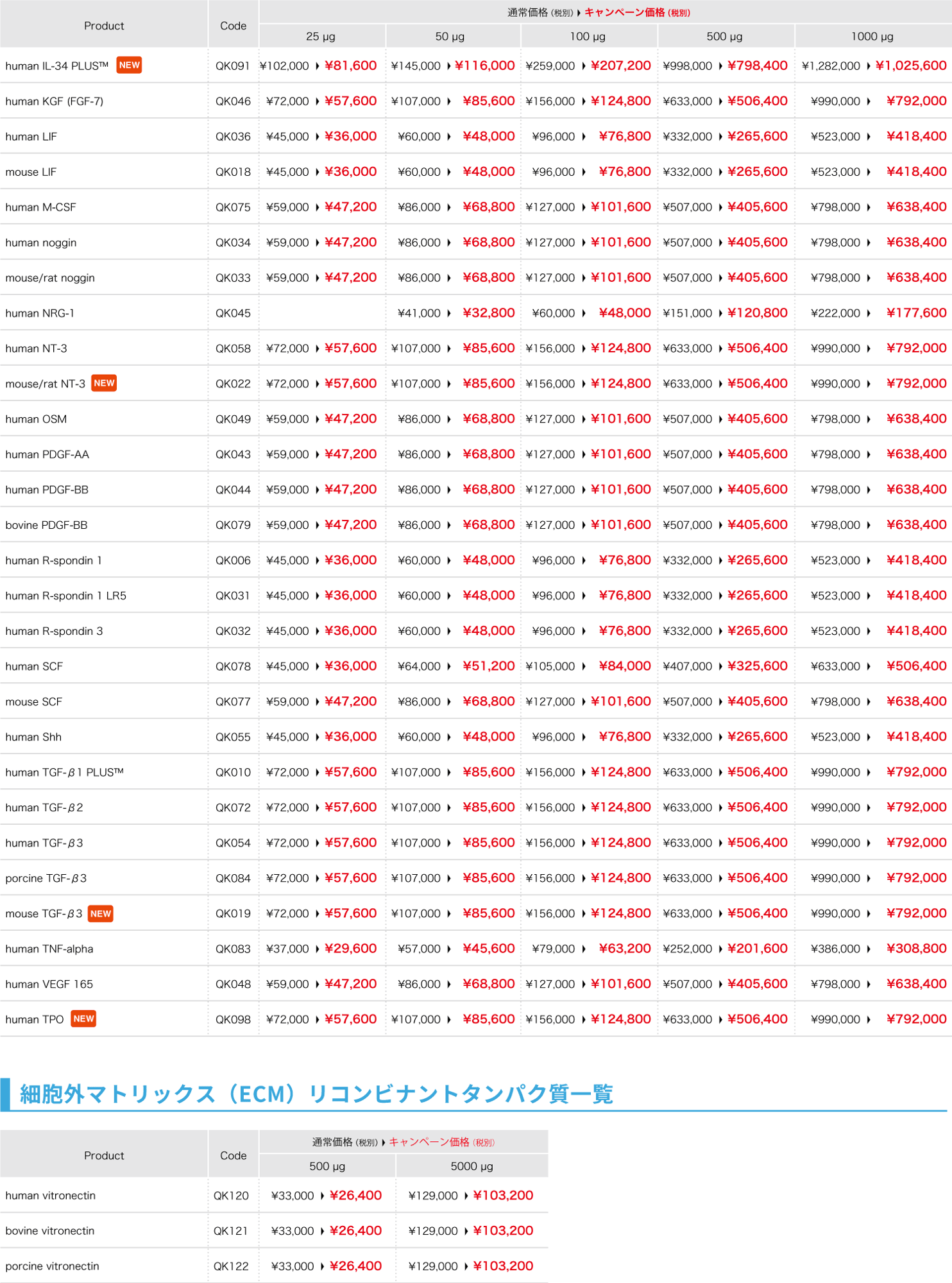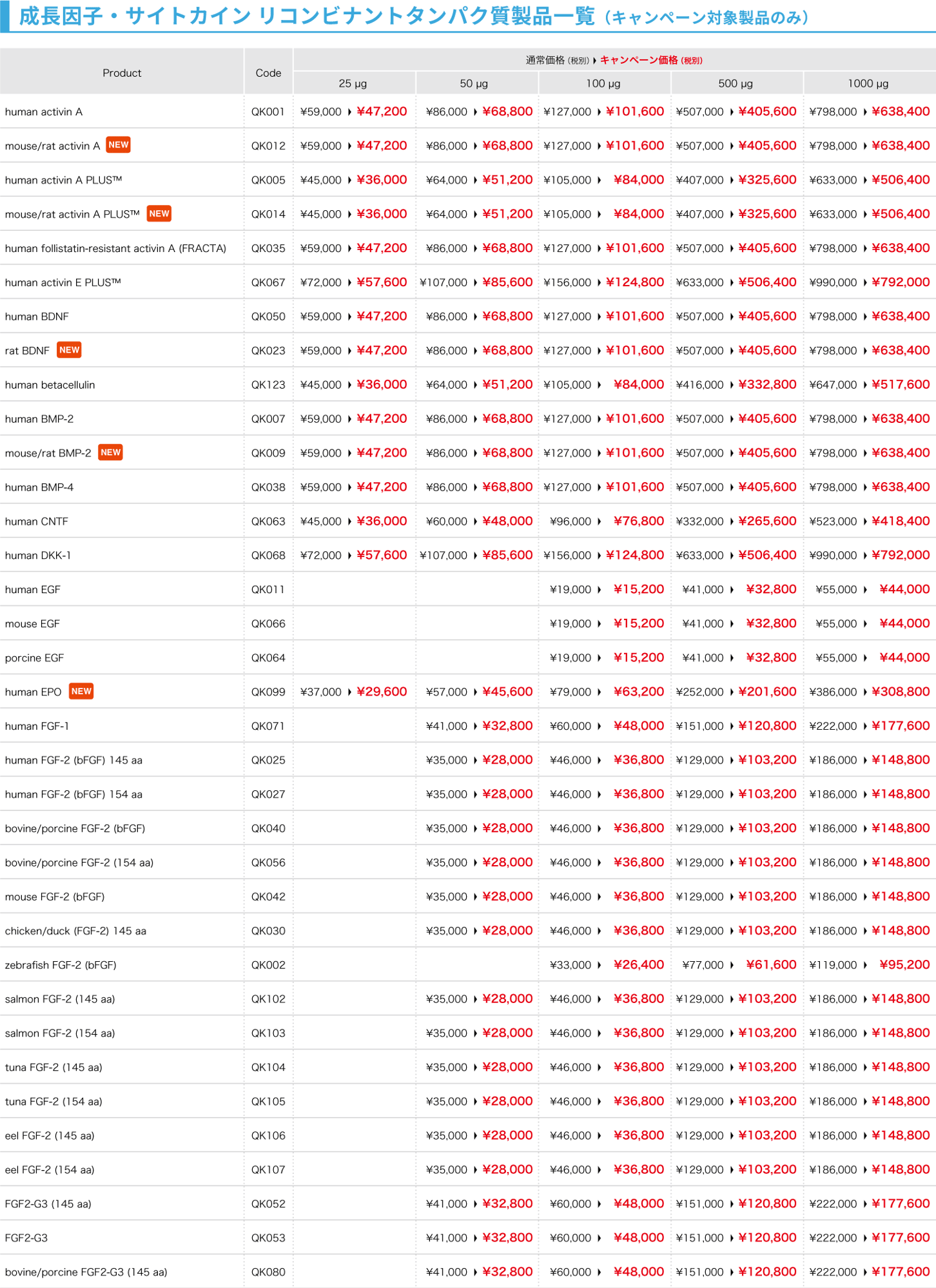 対象製品:Qkine社 アニマルフリー成長因子・サイトカイン リコンビナント全製品 ※キットは除く